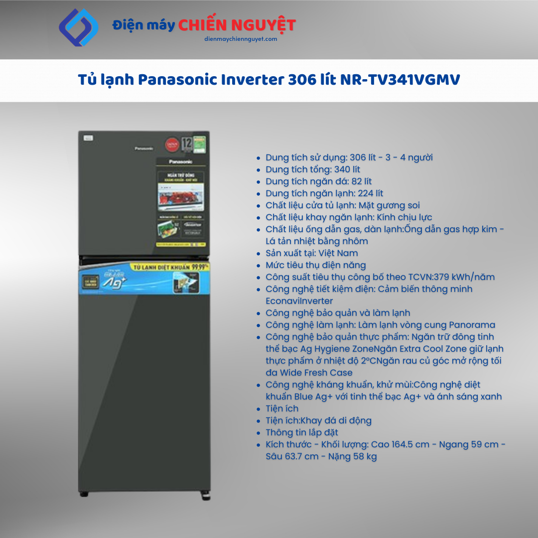 Tủ lạnh Panasonic Inverter 306 lít NR-TV341VGMV