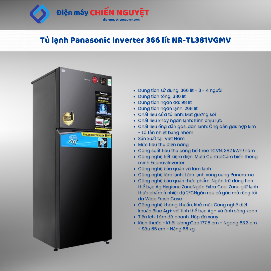 Tủ lạnh Panasonic Inverter 366 lít NR-TL381VGMV