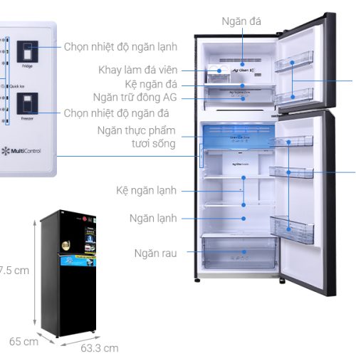 Với dung tích ngăn lạnh là 268 lít và ngăn đá là 98 lít, sản phẩm phù hợp để khối lượng thực phẩm cho gia đình từ 3 – 4 thành viên.