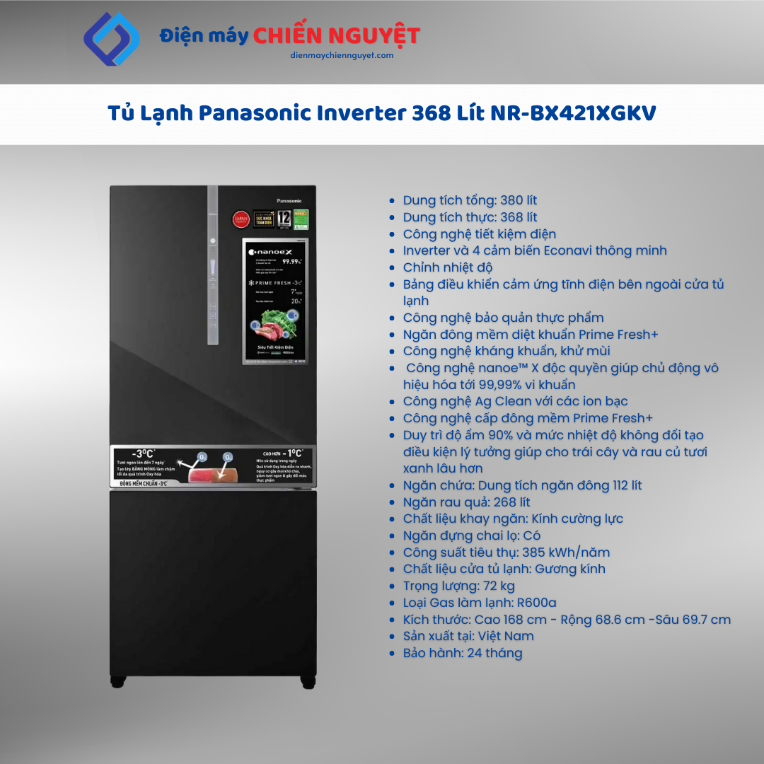 Tủ Lạnh Panasonic Inverter 368 Lít NR-BX421XGKV – Thịt cá tươi ngon đến 7 ngày