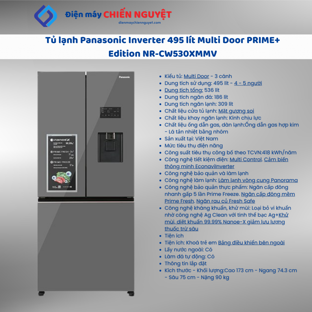 Đánh giá Tủ lạnh Panasonic Inverter 495 lít Multi Door PRIME+ Edition NR-CW530XMMV