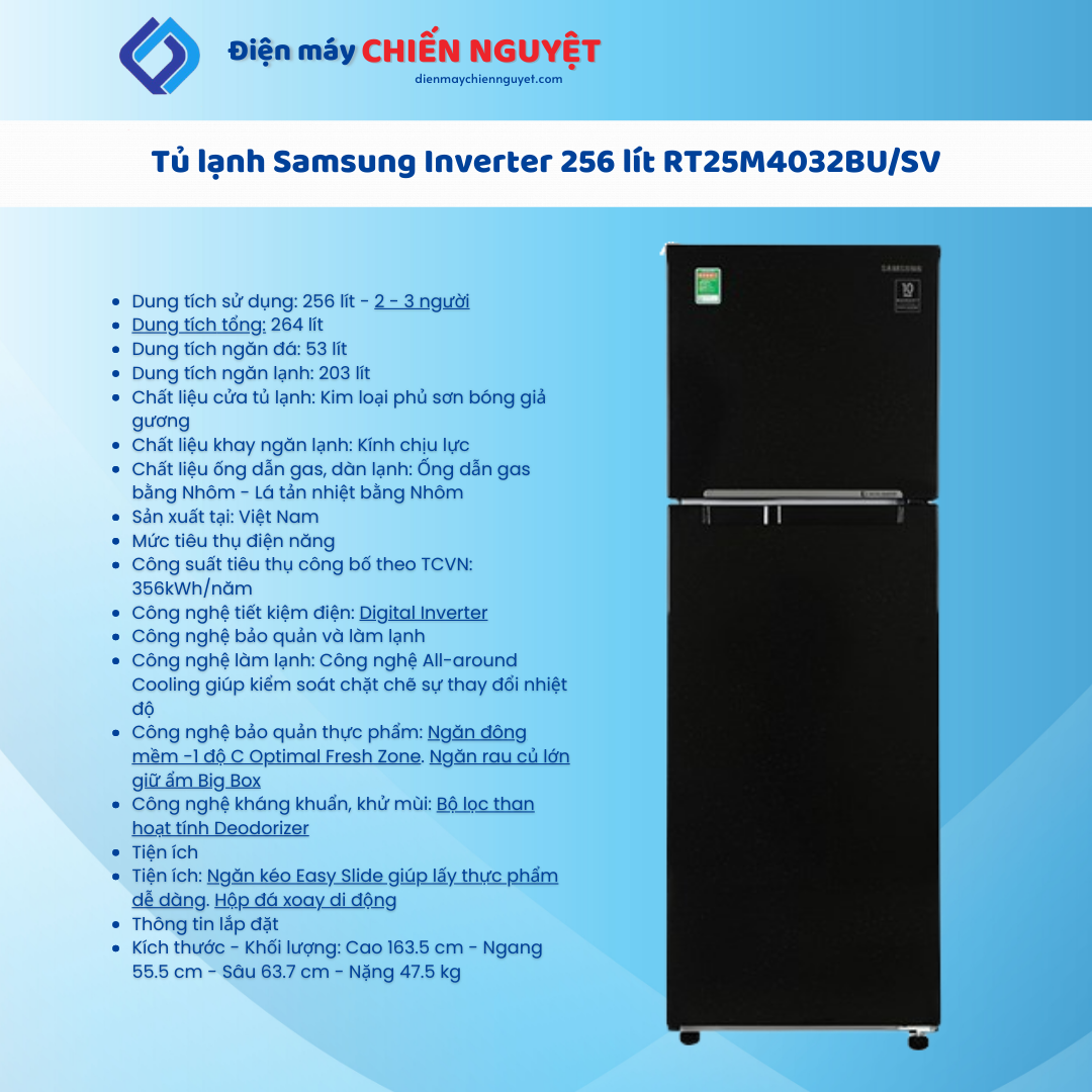 Tủ lạnh Samsung Inverter 256 lít RT25M4032BU/SV