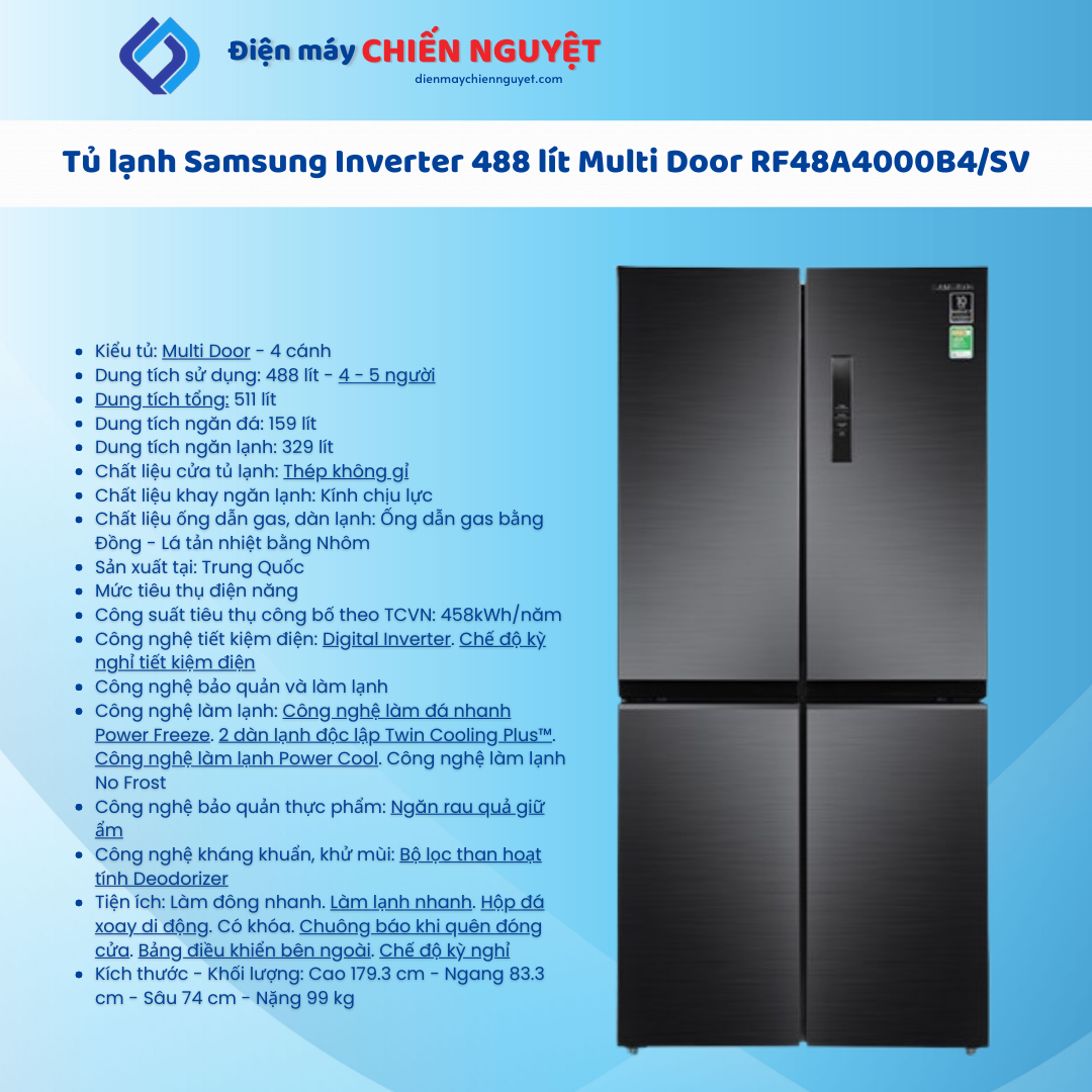 Tủ lạnh Samsung Inverter 488 lít Multi Door RF48A4000B4/SV