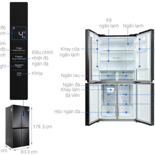 Đây là sản phẩm có nhiều tính năng hiện đại để phục vụ cho một cuộc sống hiện đại của người sử dụng như làm lạnh nhanh, bảo quản thực phẩm không làm đông tuyết, tiết kiệm điện, bảng điều khiển bên ngoài mặt cửa tủ,… mang đến một cuộc sống tiện nghi. Với dung tích 488 lít là lựa chọn đáng quan tâm của gia đình từ 4 – 5 thành viên