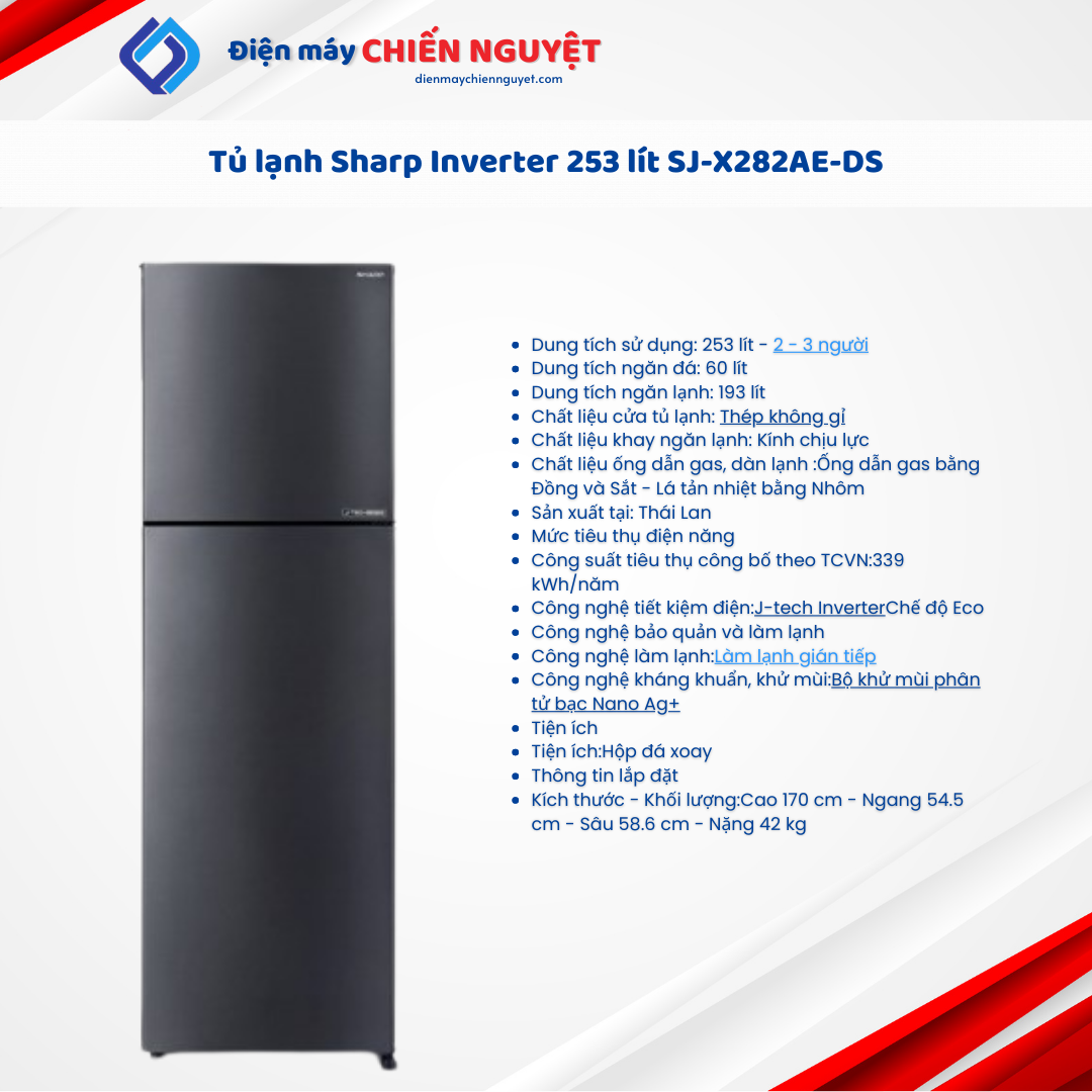 Tủ lạnh Sharp Inverter 253 lít SJ-X282AE-DS