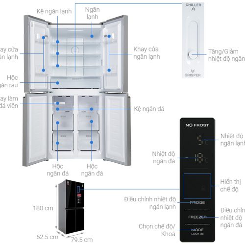 – Công nghệ làm lạnh đa chiều giúp đem luồng hơi lạnh tỏa đều khắp các ngăn tủ, làm lạnh thực phẩm nhanh chóng và hiệu quả hơn, đồng thời hạn chế quá trình oxi hóa thực phẩm, hỗ trợ giữ thực phẩm tươi ngon lâu hơn.