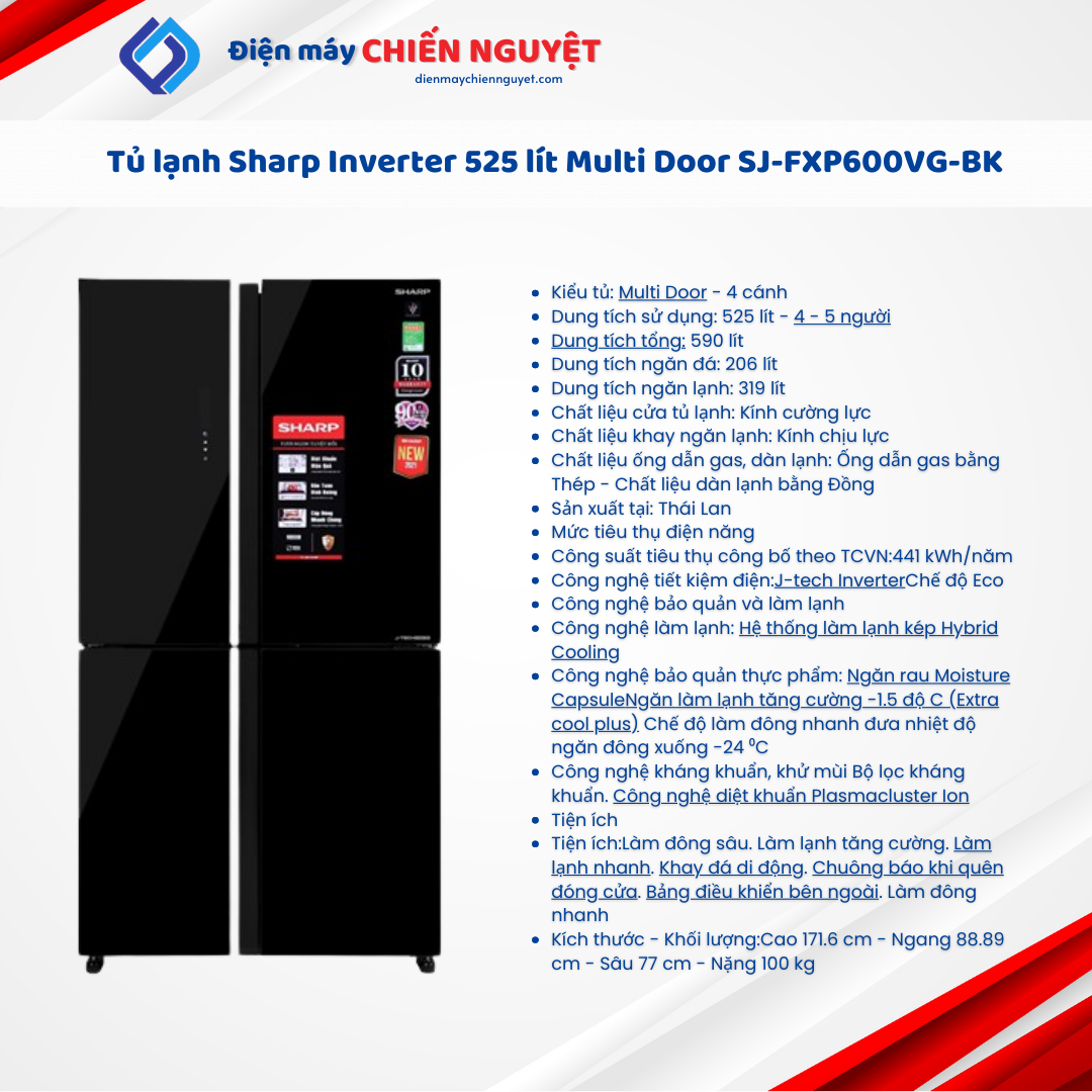 Đánh giá Tủ lạnh Sharp Inverter 525 lít Multi Door SJ-FXP600VG-BK