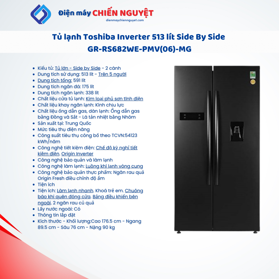 Khả năng lưu trữ thực phẩm nhiều với dung tích lên đến 513 lít, trong đó ngăn đá chiếm 175 lít và ngăn lạnh chiếm 338 lít, tủ lạnh Toshiba GR-RS682WE-PMV(06)-MG là một trong những lựa chọn phù hợp cho những hộ gia đình có trên 5 thành viên, hoặc ít hơn nhưng lại có nhu cầu bảo quản thực phẩm nhiều mỗi ngày.
