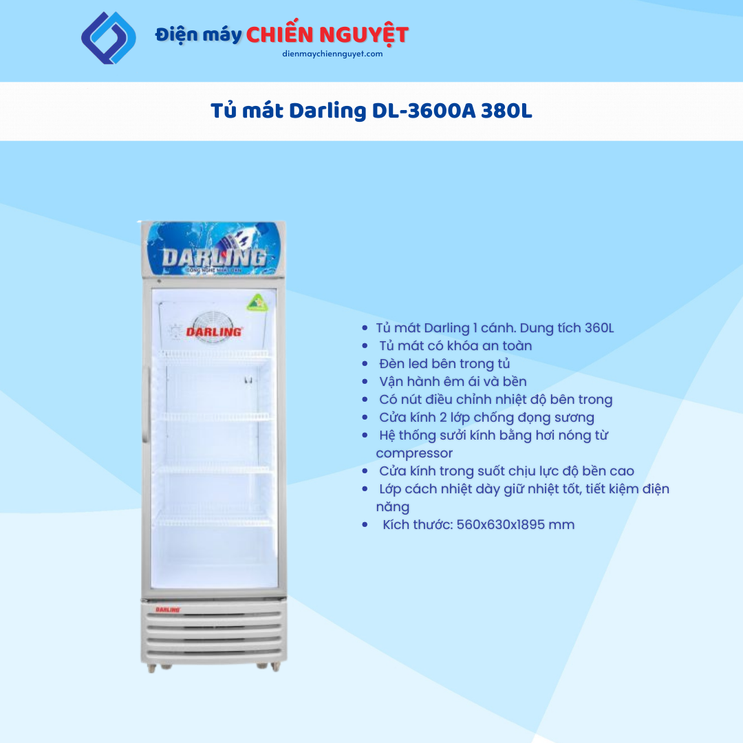 Tủ mát Darling DL 3600A có khóa tiên lợi